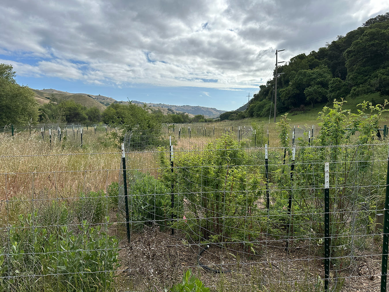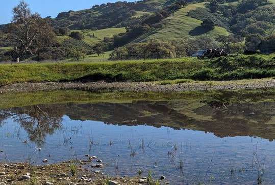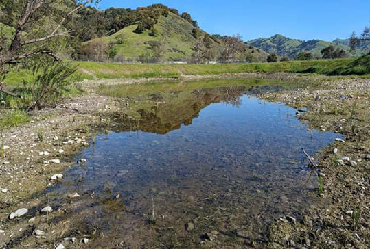 Triangle's scope of work included reconstructing the floodplain to reconnect Pacheco Creek with its side channels, establishing a seasonal wetland, and installing cattle and pig exclusion fencing to protect restored areas. Habitat improvements included SAW plantings, willow riparian forest and scrub, mixed riparian forest and woodland plantings, coastal and valley freshwater marsh plantings, in-stream Post-Assisted Log Structures (PALS), and basking structures for the Western pond turtle.
